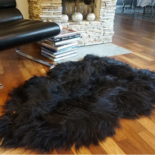 GIANT SHEEPSKIN Triple XXL Black Throw Genuine leather Sheep Skin 64" x 46" Decorative rug Natural comfy,cozy, hair is very thick