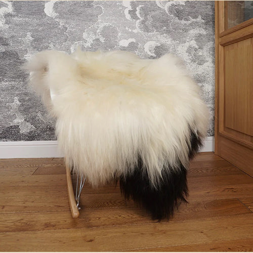 GIANT SHEEPSKIN Triple XXL black and white Mouflon Throw Genuine leather Sheep Skin 64" x 46" Decorative rug Natural comfy,cozy, hair thick