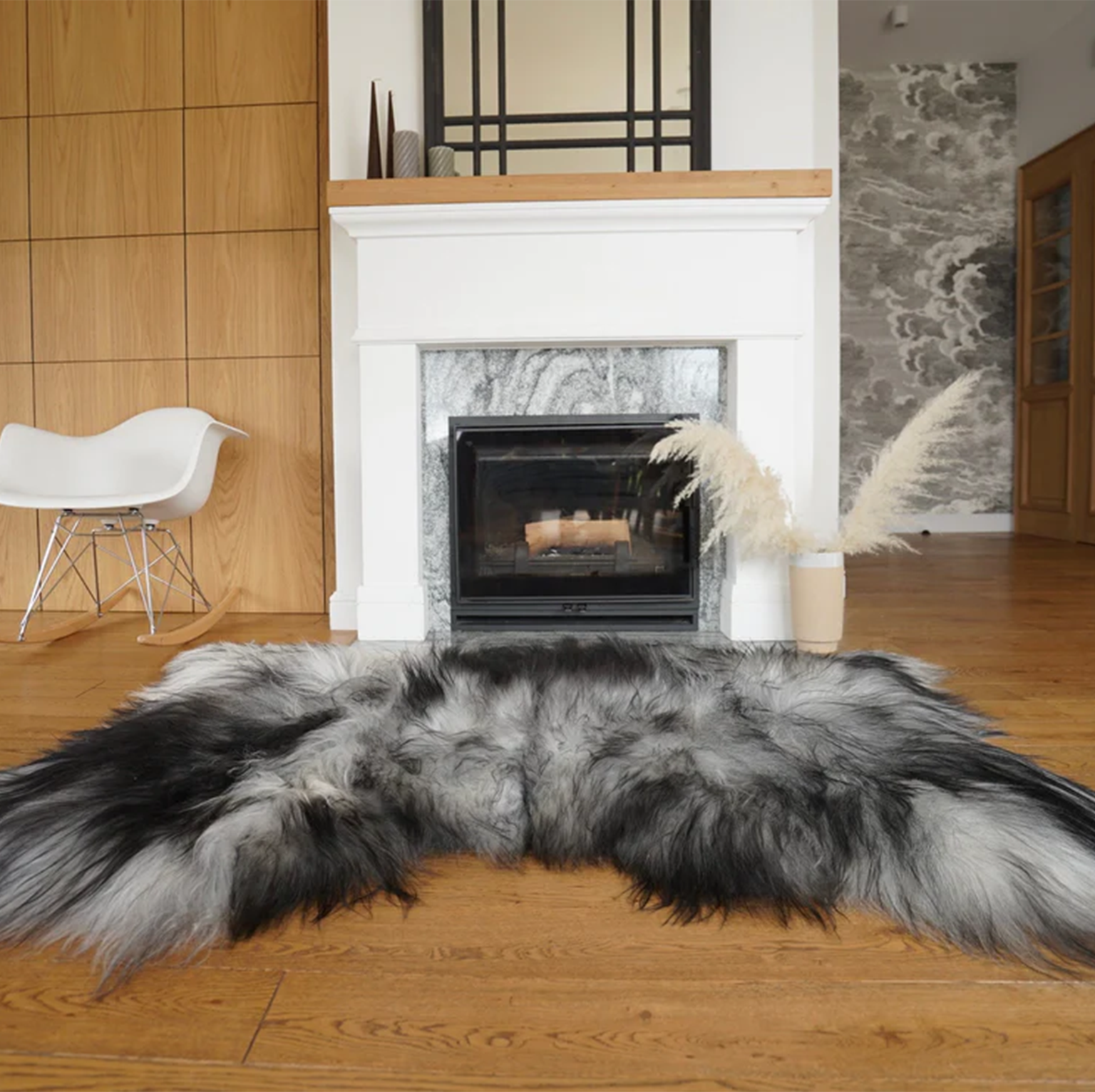 Sink into softness with oversized sheepskin rugs for a cozy and luxurious retreat.