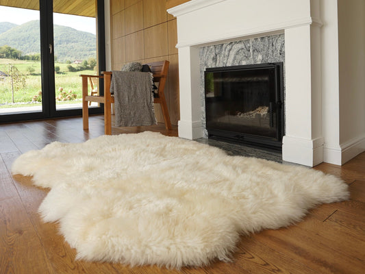 Sink into softness with oversized sheepskin rugs for a cozy and luxurious retreat.