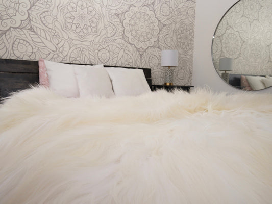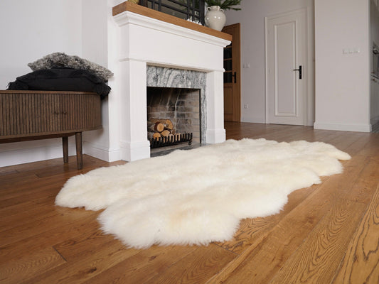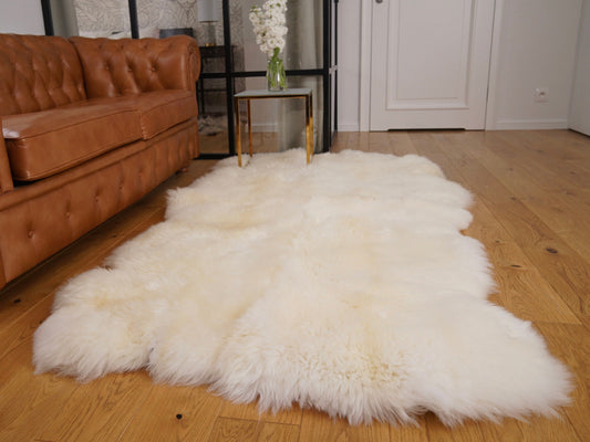 GIANT Rug FOUR Icelandic SHEEPSKIN White Throw Genuine Leather Sheep Skin Decorative rug - White comfy, cozy, natural very thick!