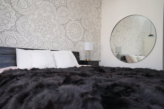 Genuine Toscana Lamb Sheepskin Throw Blanket Rug Black Bed Spread Sofa Throw Gray Rug Black Rug Large Rug