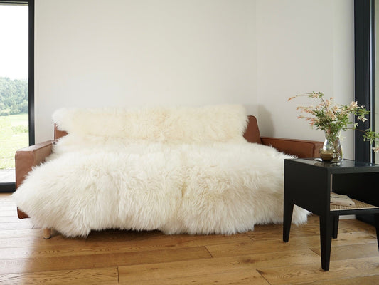 GIANT SHEEPSKIN Double XXL White Throw Genuine leather Sheep Skin 46" x 46" Decorative rug Natural comfy cozy Scandinavian sheepskin rug boho sheepskin throw
