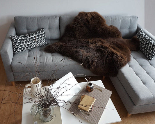GIANT SHEEPSKIN Double XXL Brown Throw Genuine leather Sheep Skin 79 "x 32" Decorative rug Natural comfy, cozy, hair is very thick, shiny !