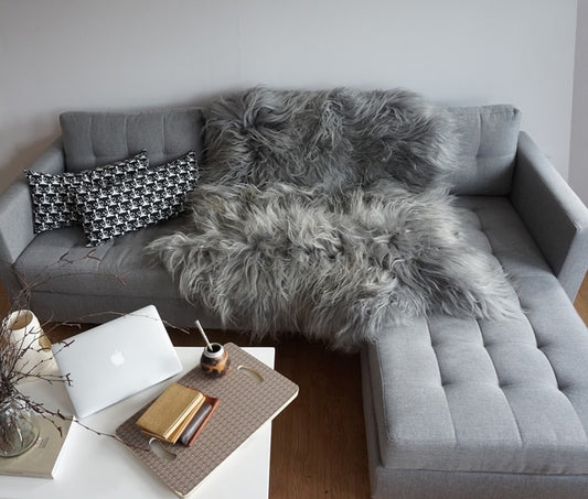 GIANT SHEEPSKIN Double XXL Grey Throw Genuine leather Sheep Skin 52" x 52" Decorative rug Natural comfy,cozy, hair is very thick, shiny !