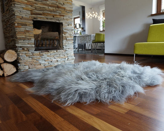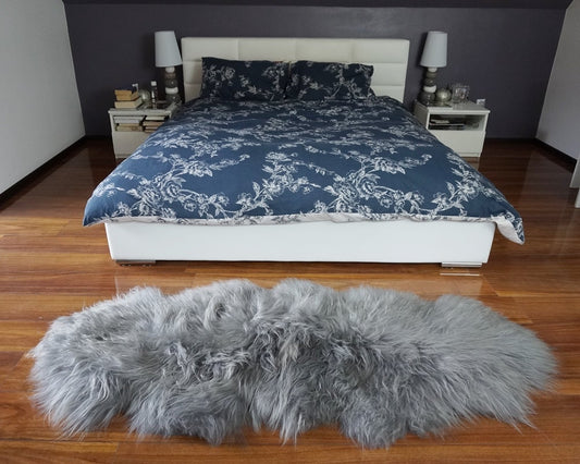 GIANT SHEEPSKIN Double XXL Grey Throw Genuine leather Sheep Skin 79" x 32" Decorative rug Natural comfy,cozy, hair is very thick, shiny !