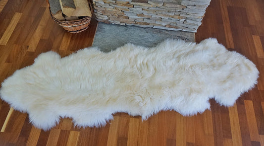 GIANT SHEEPSKIN Double White Throw Genuine leather Sheep Skin 79" x 30" Decorative rug Natural comfy, cozy, hair is very thick, shiny !