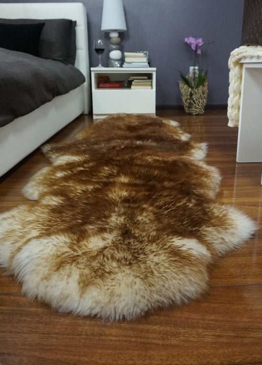GIANT Sheepskin Double X Brown Throw Genuine leather Sheep Skin 79" x 30" Decorative rug Natural comfy,cozy, hair is very thick, s