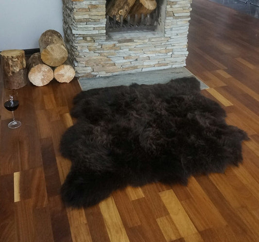 GIANT SHEEPSKIN Double XXL Brown Throw Genuine leather Sheep Skin 46 "x 46" Decorative rug Natural comfy,cozy, hair is very thick, shiny !