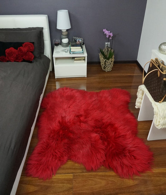 GIANT SHEEPSKIN Double XXL Red Throw Genuine leather Sheep Skin 50 "x 50" Decorative rug Natural comfy, cozy, hair is very thick, shiny !