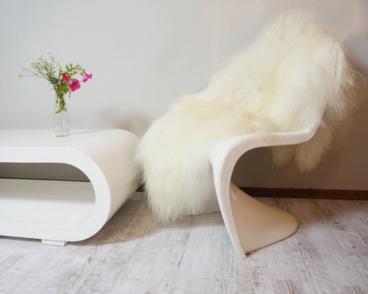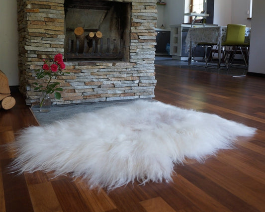 GIANT SHEEPSKIN Icelandic 50"x 32" White True Genuine leather Sheep Skin Decorative rug White comfy, cozy hair is very long, shiny rugs