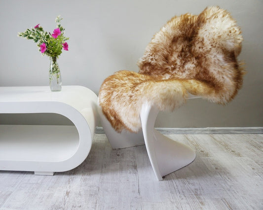 GIANT SHEEPSKIN Triple X Mouflon White Brown Throw Genuine leather Sheep Skin 64" x 46" Decorative boho sheepskin throw
