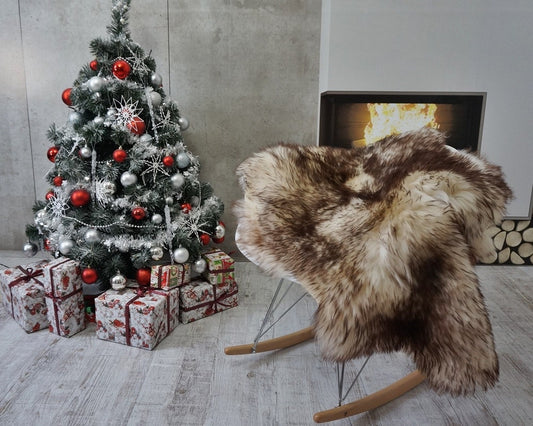 GIANT SHEEPSKIN Triple XXL Brown Throw Genuine leather Sheep Skin 64" x 46" Decorative rug Natural comfy cozy Scandinavian sheepskin rug boho
