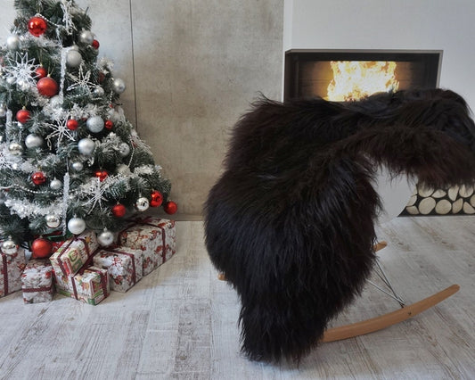 GIANT SHEEPSKIN Icelandic Black Throw Genuine leather Sheep Skin 50 "x 30" Decorative rug black comfy, cozy, hair is very thick, shiny !