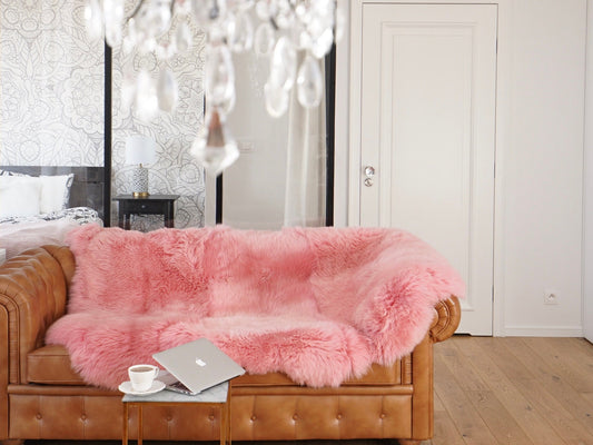 GIANT SHEEPSKIN Double XXXL Pink Throw Genuine leather Sheep Skin 50" x 50" Decorative rug Natural comfy, cozy