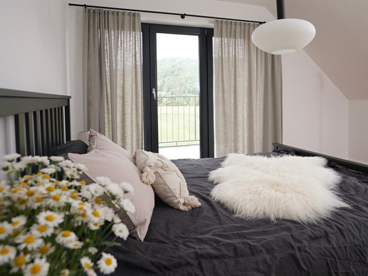 GIANT Sheepskin Mouflon Throw Genuine leather Sheep Skin Decorative rug 48'' x 28" comfy, cozy, hair is very thick, shiny !