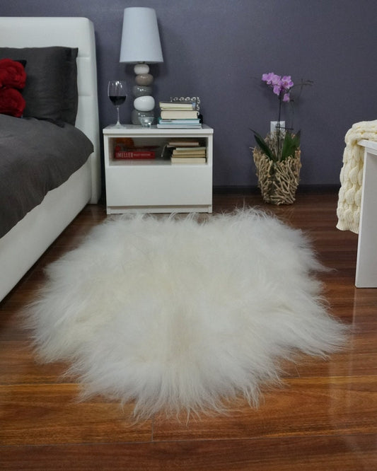 GIANT SHEEPSKIN Round White Throw Genuine leather Sheep Skin 74" Decorative Amazing Genuine Natural Round Sheepskin Rug - Thick Creamy
