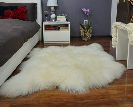 GIANT SHEEPSKIN Double XXL White Throw Genuine leather Sheep Skin 50" x 50" Decorative rug Natural comfy,cozy, hair is very thick, shiny !