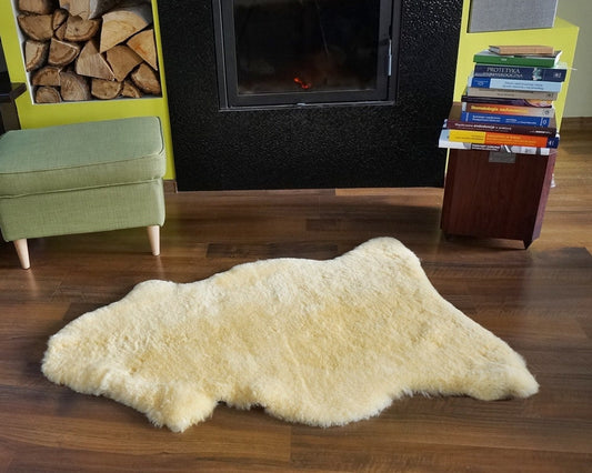 GIANT SHEEPSKIN MEDICAL Healthy Yellow Throw Genuine leather Sheep Skin Decorative rug 46 "x 28" comfy, cozy, hair is very thick, shiny