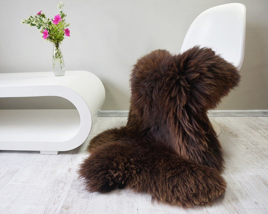 Giant SHEEPSKIN XL BROWN Throw Genuine leather Sheep Skin Decorative rug Brown 46 "x 26" comfy, cozy, hair is very thick! Good gift!!
