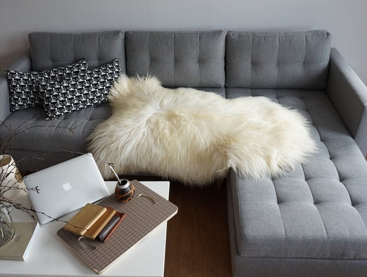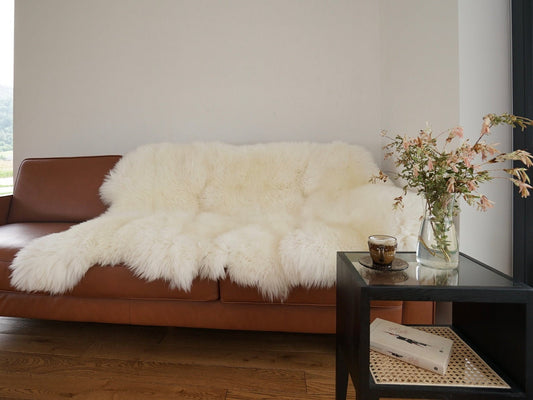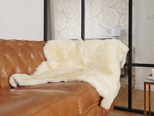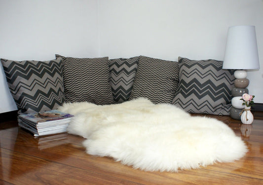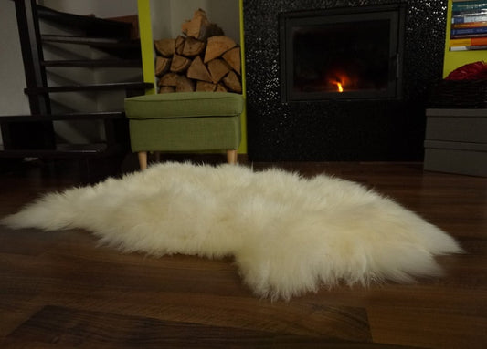 Natural White Sheepskin rectangle Rug 200x160cm (78"x63") - Genuine Wool, Rectangular, Soft & Cozy Natural White Wool
