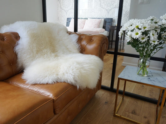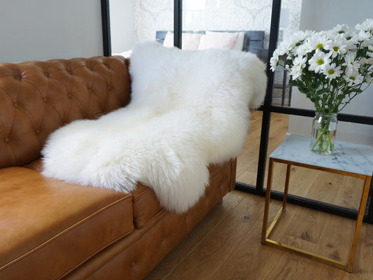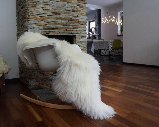 Original, Natural GIANT X White Genuine Natural Sheepskin Shag Rug Exclusive rug draped on chair bench cheap fur rug good gift