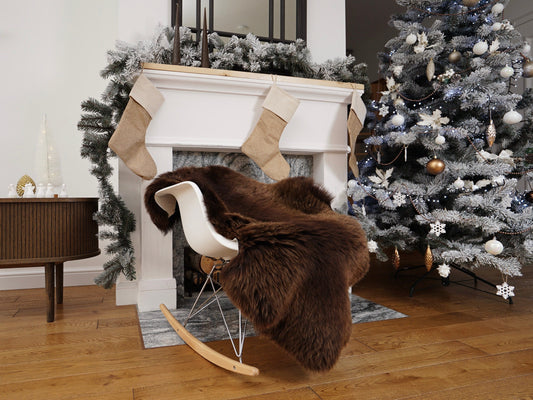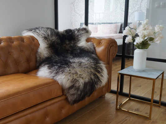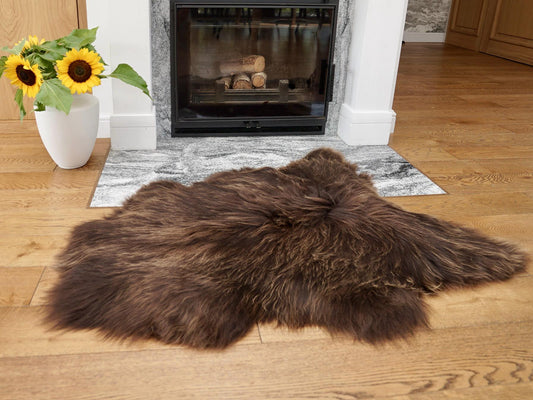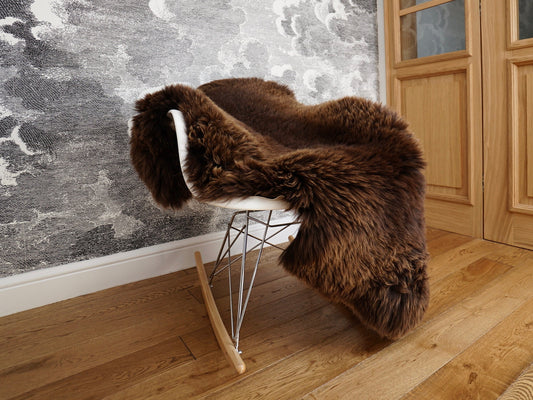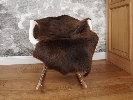 SHEEPSKIN Brown Throw Genuine leather Sheep Skin Decorative rug brown comfy, cozy, hair is very thick, shiny !
