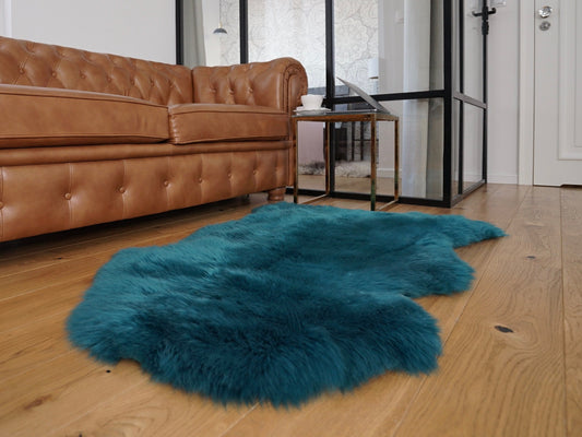 SHEEPSKIN dark green Aqua color Throw Genuine leather Sheep Skin Dyed Decorative rug light blue comfy, cozy, hair is very thick, shiny !