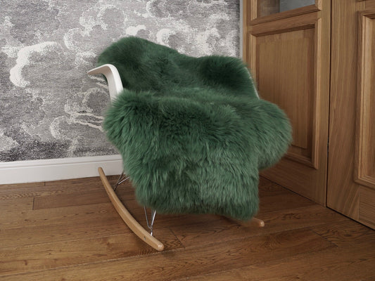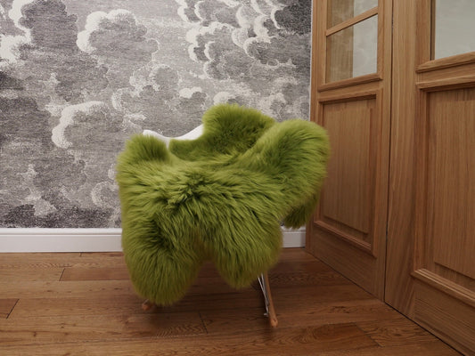 SHEEPSKIN GREEN X Throw Genuine leather Sheep Skin Decorative rug green comfy, cozy, hair is very thick, shiny !