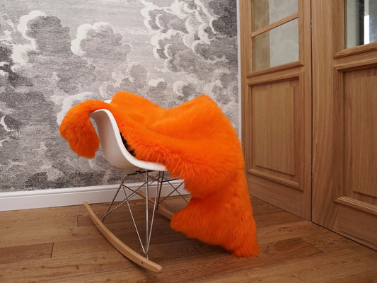 SHEEPSKIN Orange Throw Genuine leather Sheep Skin Decorative rug brown comfy, cozy, hair is very thick, shiny !