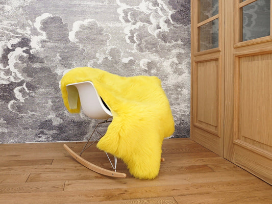 SHEEPSKIN Yellow Throw Genuine leather Sheep Skin Dyed Decorative rug yellow comfy, cozy, hair is very thick, shiny !