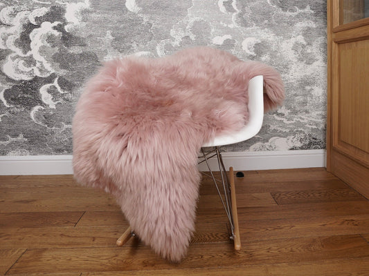 SHEEPSKIN Pink Throw Genuine leather Sheep Skin Decorative rug brown comfy, cozy, hair is very thick, shiny !