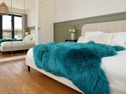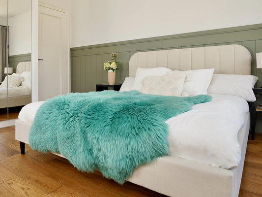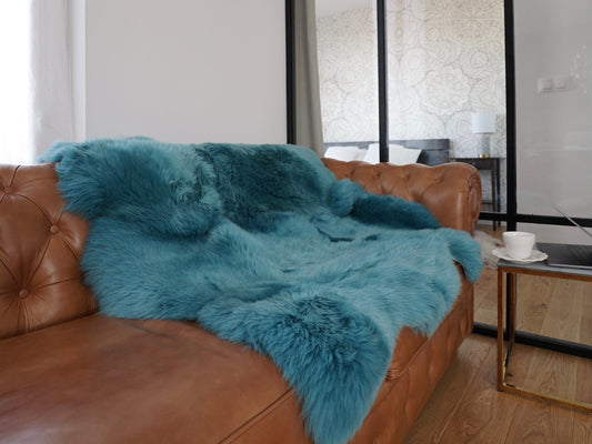 GIANT SHEEPSKIN Double Aqua Blue Throw Genuine leather Sheep Skin 50" x 50" Decorative rug Natural cozy, hair is very thick, shiny
