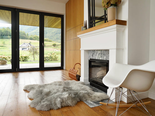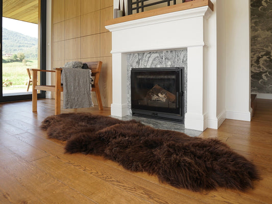 Double Icelandic Sheepskin Rug Black White Mouflon | Long Fur Nordic Decor Luxury Black Real Icelandic Sheepskin Long Fur Rustic home Decor
