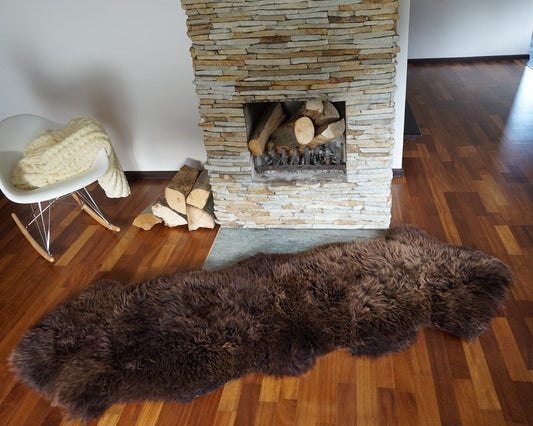 GIANT SHEEPSKIN Double XXL Brown Throw Genuine leather Sheep Skin 79 "x 30" Decorative rug Natural comfy,cozy, hair is very thick, shiny !