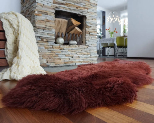 SHEEPSKIN Double X Burgundy Throw Genuine leather Sheep Skin 72" x 30" Decorative rug Natural comfy, cozy,hair is very thick, shiny !