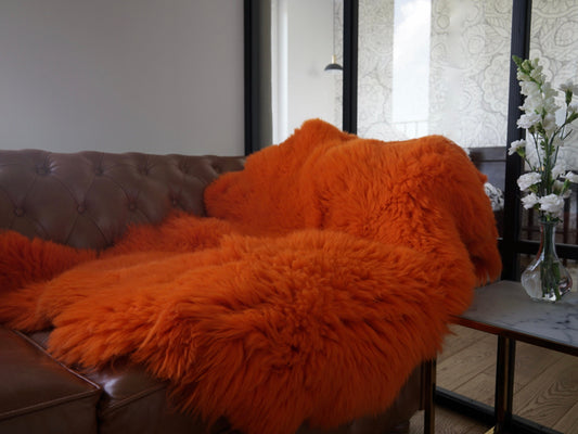 GIANT SHEEPSKIN Double Orange Throw Genuine leather Sheep Skin 50" x 50" Decorative rug Natural comfy, cozy, hair is very thick, shiny