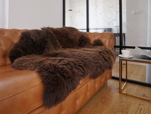 GIANT SHEEPSKIN Double XXL Brown Throw Genuine leather Sheep Skin 79 "x 32" Decorative rug Natural comfy, cozy, hair is very thick, shiny !
