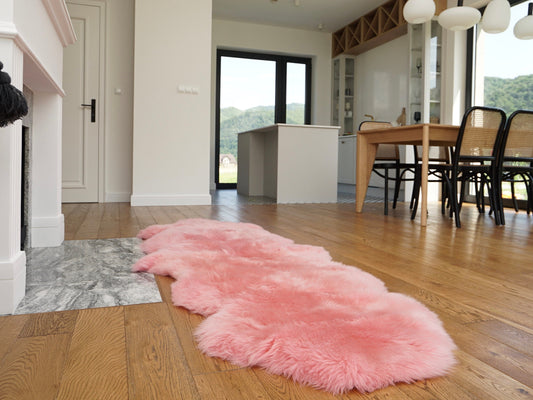 GIANT SHEEPSKIN Double XXL Pink Throw Genuine leather Sheep Skin 79" x 30" Decorative rug Natural comfy, cozy, hair is very thick, shiny !