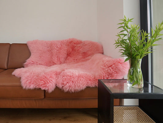 GIANT SHEEPSKIN Double XXXL Pink Throw Genuine leather Sheep Skin 50" x 50" Decorative rug Natural comfy, cozy
