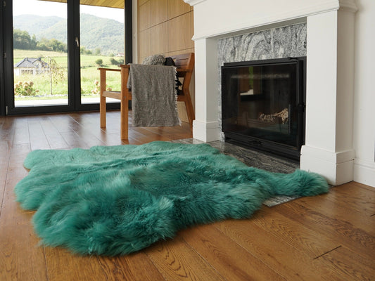 GIANT SHEEPSKIN Double Aqua Blue Throw Genuine leather Sheep Skin 46" x 46" Decorative rug Natural cozy, hair is very thick, shiny