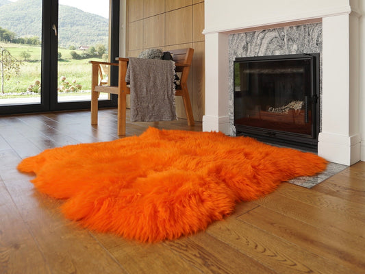 GIANT SHEEPSKIN Double XXL Orange Throw Genuine leather Sheep Skin 46 "x 46" Decorative rug Natural comfy, hair is very thick, shiny !