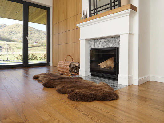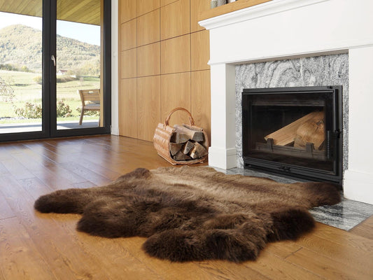 GIANT SHEEPSKIN Double XXL Mouflon brown Throw Genuine leather Sheep Skin 48" x 48" Decorative rug Natural comfy, cozy