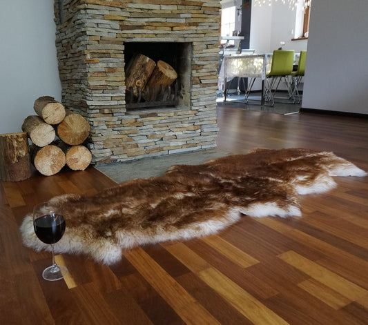 GIANT SHEEPSKIN Double X Mouflon Throw Genuine leather Sheep Skin 79" x 30" Decorative rug Natural comfy,cozy, hair is very thick, shiny !
