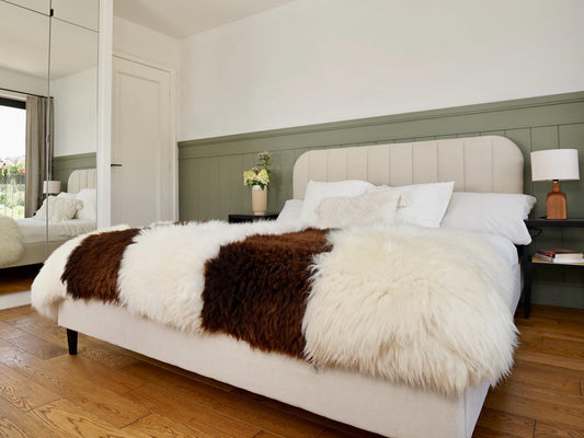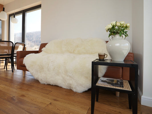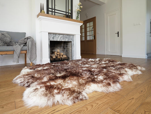 Rug SEXTO SHEEPSKIN MouflonThrow Genuine Leather Sheep Skin Decorative rug - White, Brown comfy, cozy, natural very thick!