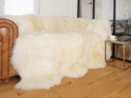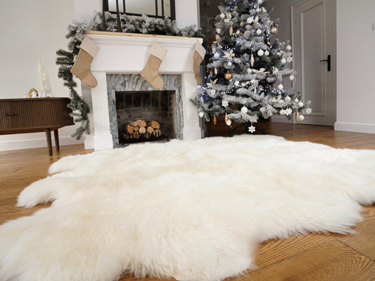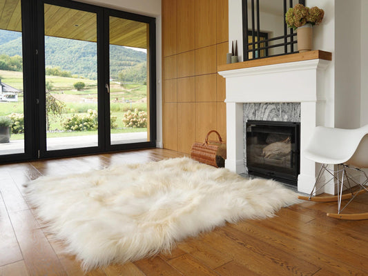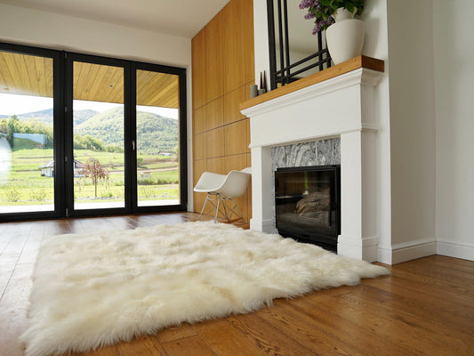Natural White Sheepskin rectangle Rug 200x160cm (78"x63") - Genuine Wool, Rectangular, Soft & Cozy Natural White Wool