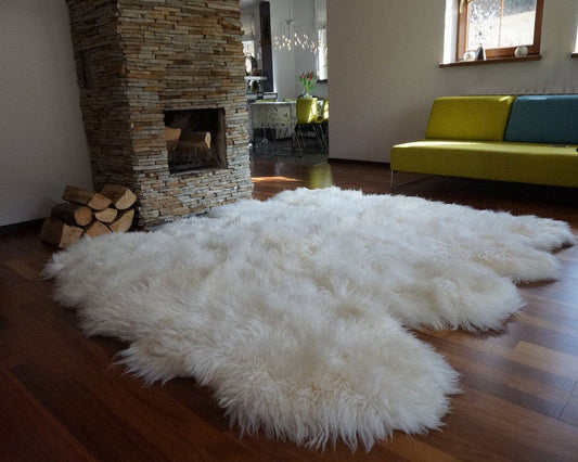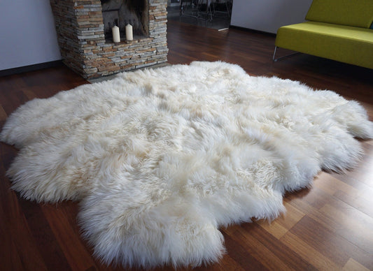 GIANT RUG Sexto SHEEPSKIN Six 80" x 70" White Throw Genuine Leather Sheep Skins Decorative rug - White comfy, cozy, Throw Rugs Carpet