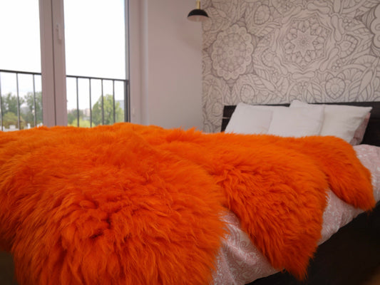 GIANT RUG Sexto SHEEPSKIN Six 79" x 45" Orange Throw Genuine Leather Sheep Skins Decorative rug - White comfy, cozy, Throw Rugs Carpet