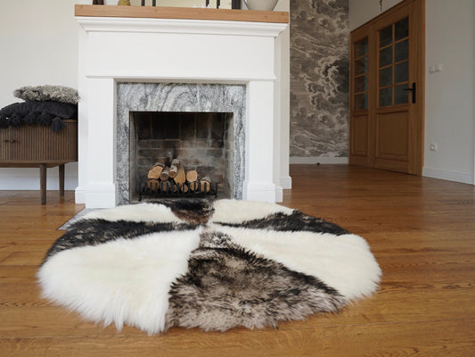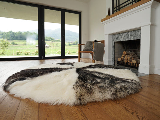 GIANT SHEEPSKIN Round White and Black Throw Genuine leather Sheep Skin 74" Decorative Amazing Natural Round Sheepskin Rug - Thick Creamy Scandinavian sheepskin rug boho sheepskin throw