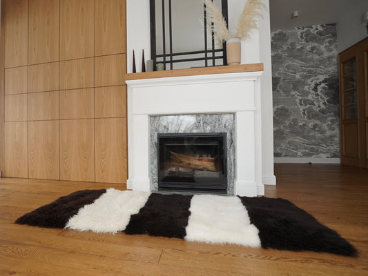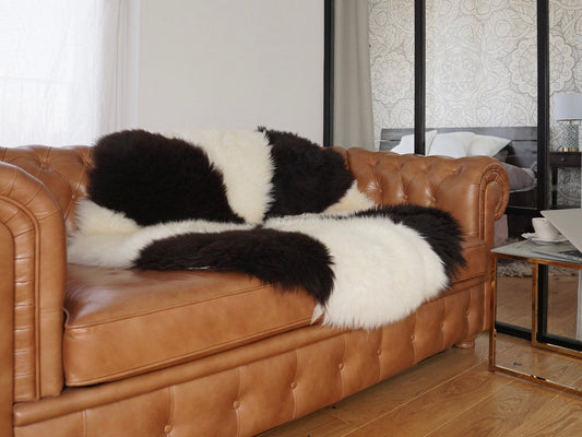 Genuine Sheepskin Rug rectangle 78"x31" White & Brown Soft Thick Natural Wool Carpet Rustic Living Room Cozy Wool Decor Stylish Accent